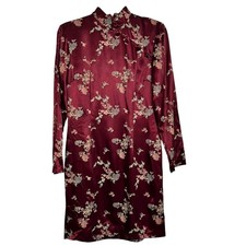 Vintage Floral Cheongsam Dress Mandarin Collar Asian Style Burgundy Size 6