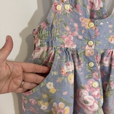 Vintage Floral Overall Jumper Romper Double Button Straps Cotton 90s Large / 14