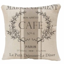 Vintage French Cafe Cushion Pillow Case Cover 18″ x 18″ Double Sided, Beige