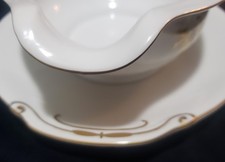 Vintage Fukagawa Japan Arita Gold Bamboo Trees Gravy With Attached Under Plate