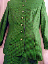 Vintage Geoffrey Beene New York Skirt Suit Silk Blend Green Black Check Medium