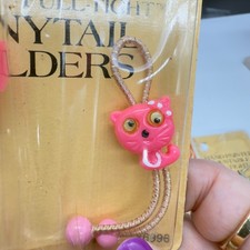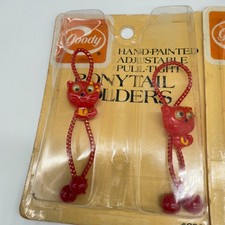 Vintage Goody 3 Sets RARE Twin Bead Ponytail Holders Cats with Googly Eyes