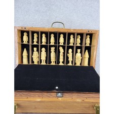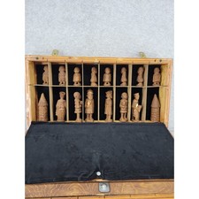 Vintage Hand-Carved Wooden African Style Chess Set In Wooden Box