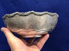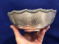 Vintage Hand Engraved Middle Eastern Fruit &candy Bowl,84 SOLID Silver 405.10g