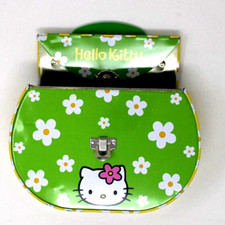 Vintage Hello Kitty Tin Purse Sanrio 2003 Yellow Green White Flowers