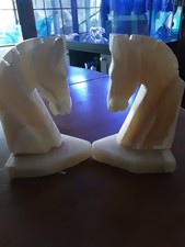 Vintage Italian Hand Carved Onyx Marble Horse Head Bookends 6”H