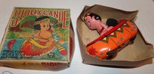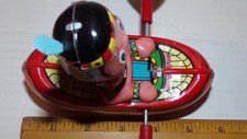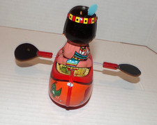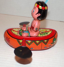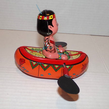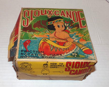 Vintage Japan YANOMAN Rowing Sioux Canoe Tin Friction Toy Works with Box