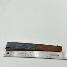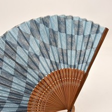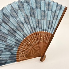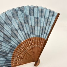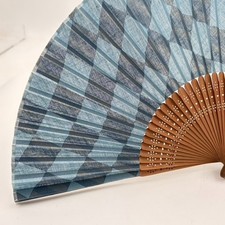 Vintage Japanese Folding Fan Sensu Bamboo Frame Simple Blue Ikat Silk Good Cond