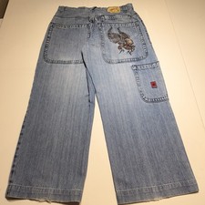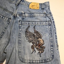 Vintage JNCO Men’s 33×26 Jeans Embroidered Skull Wings Flying See Dimensions