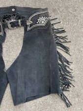 Be the first to review “Vintage Kippys Custom Short Chaps Leather Fringe Rodeo Motorcycle Swarovski Rare” Cancel reply