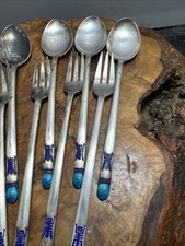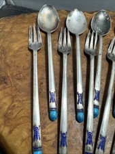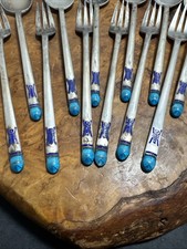 Vintage Korean 70% Sterling Silver Enamel Dessert 12 Spoons & forks (W)