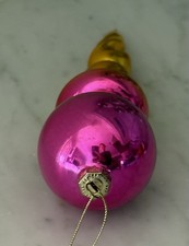 Vintage Large Hot Pink & Orange Ombre Glass Finial Christmas Ornament