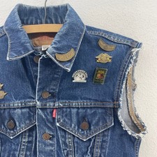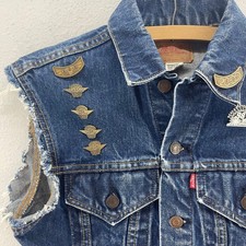 Vintage Levis Big E Denim Vest S Cut Off HOG Pins Bikercore Grunge Indie Punk