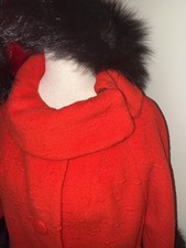 Vintage Lilli Ann Wool Red with Black Fur Trim Coat Please Read
