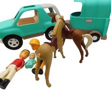 Vintage Little Tikes Blue Family Cruiser Jeep SUV Horse Trailer Toy Set READ
