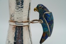 Vintage LOS CASTILLO Taxco Silverplate Lapis Parrot JIGGER 4″