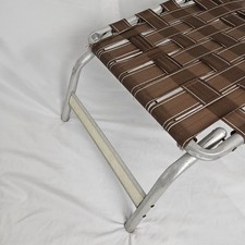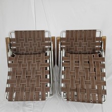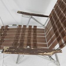 Vintage Lounge Lawn Chairs Chaise Armchairs Wooden Arms Galvanized Tri-fold MCM