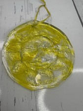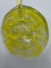 Vintage Man In The Sun Face Glass YELLOW Blown Glass Suncatcher 4.5”