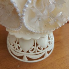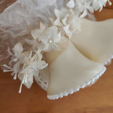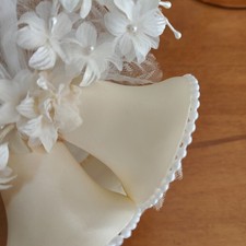 Vintage MCM 50s Floral Bells & Hearts Wedding Cake Topper Satin Toile Plastic