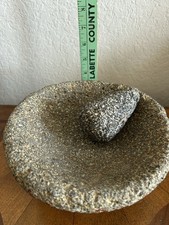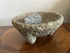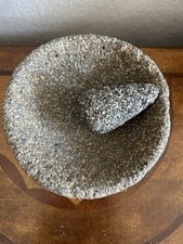 Vintage Mexican Molcajete & Tejolete Hand Carved Lava Rock Signed On Outer Side*