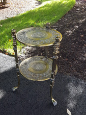Vintage midcentury Moroccan gold gilt metal drinks table accent 2 tier 7184