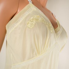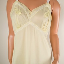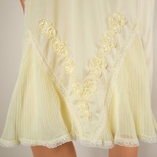 💖 Vintage MOVIE STAR Lemon Yellow Full Slip Dress 36 Nylon Accordion Pleats