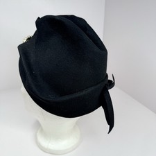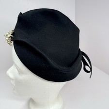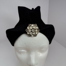 Vintage New York Creation Women’s Cloche Turban Fur Felt Hat Rhinestone Broach
