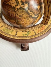 Vintage Old World Italian Zodiac Table Desktop Globe Faux Wood 4.5″ Diameter