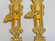 Vintage Ornate Escutcheon Bronze Keyhole Door Handles Plate Lock Cover Pair
