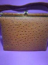 Vintage Ostrich Exotic Spanish Leather Handbag Mid Century