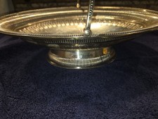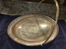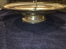Vintage Oval Silver Plate Basket Pedestal Folding Handle Estate Find Signed