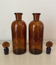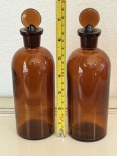 Vintage Pair Of T C W Co. Brown Glass Apothecary Bottles With Glass Stoppers