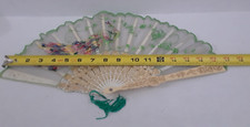 Vintage Peacock Sewn Frilled Hand Fan Stitched Embroidered with Tassel