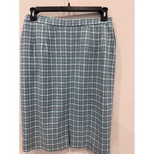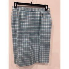 Vintage Pendleton Wool Skirt Suit Women’s 14 Houndstooth Blue Gray Made in USA