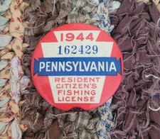 Vintage Pennsylvania Fishing License Button Pin, 1944. So Fun!