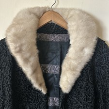 Vintage Persian Black Mink Coat With Mink Fur Collar Thigh Length Size Medium