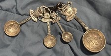 Vintage Pewter Measuring Spoons 4 Piece Set Teapots Flowers Kitchen Decor