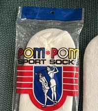 Vintage Pom Pom Sport Socks Lo Cut 2 Pairs White Lavender Orlon/Polyester 8.5-11