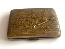 Vintage Rare Art Deco Erotic Metal Gilded Cigarette Box