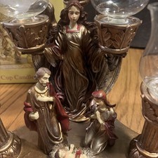Vintage Religious Christmas Jewels Nativity Five Cup Candle Holder (Peg Glass)