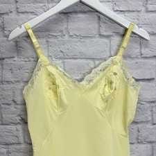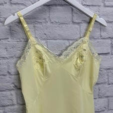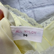 Vintage Shadowline Butter Yellow Full Slip S/34 Nylon Floral Lace Detail Dress