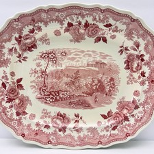 Vintage Shannondale Red Pink Transferware English Landscape Large Platter