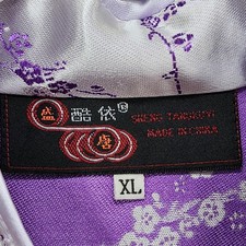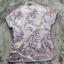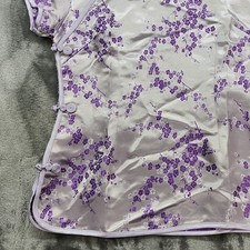 Vintage SHENG TANGKUYI Top Womens XL Purple Floral Satin Cheongsam Asian Preppy