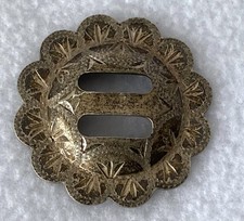 Vintage Solid STERLING Silver 1-1/2″ Slotted Concho~Visalia Pattern~HAND Engrave