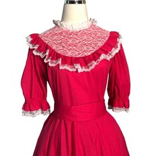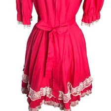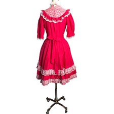 Be the first to review “Vintage Square Dance Dress Small Raspberry Red Lace Yoke Hand Sewn Circle Skirt”