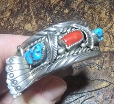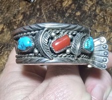 Vintage Sterling Silver Native American Trading Post Cuff Bracelet Watch Band