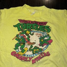 Vintage Teenage Mutant Ninja Turtles T-Shirt Youth M Yellow 1990 Mirage Studios