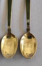 Vintage TH Marthinsen Gilded Sterling Guilloche Enamel Demitasse 4 Spoons Norway