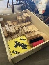 Vintage Thomas And Friends Wooden Table With Rolling Drawers And Accessories