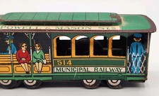 Vintage Tin Toy Train Trolley Car Powell & Mason Municipal Railway #514 Japan